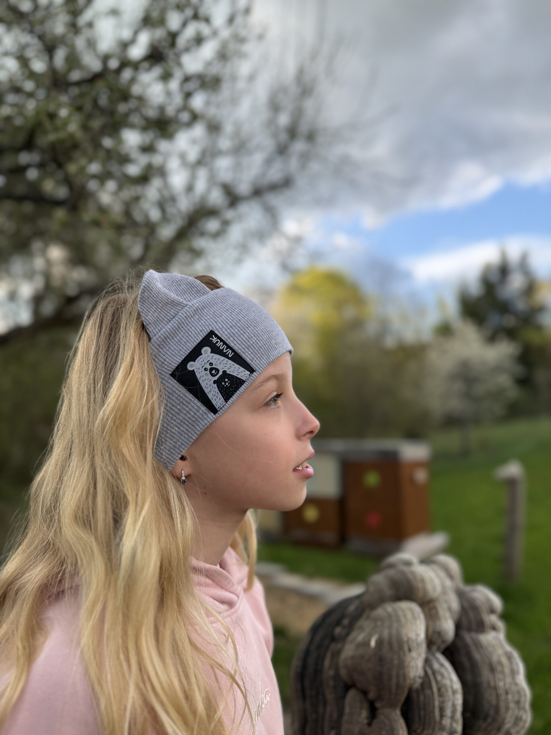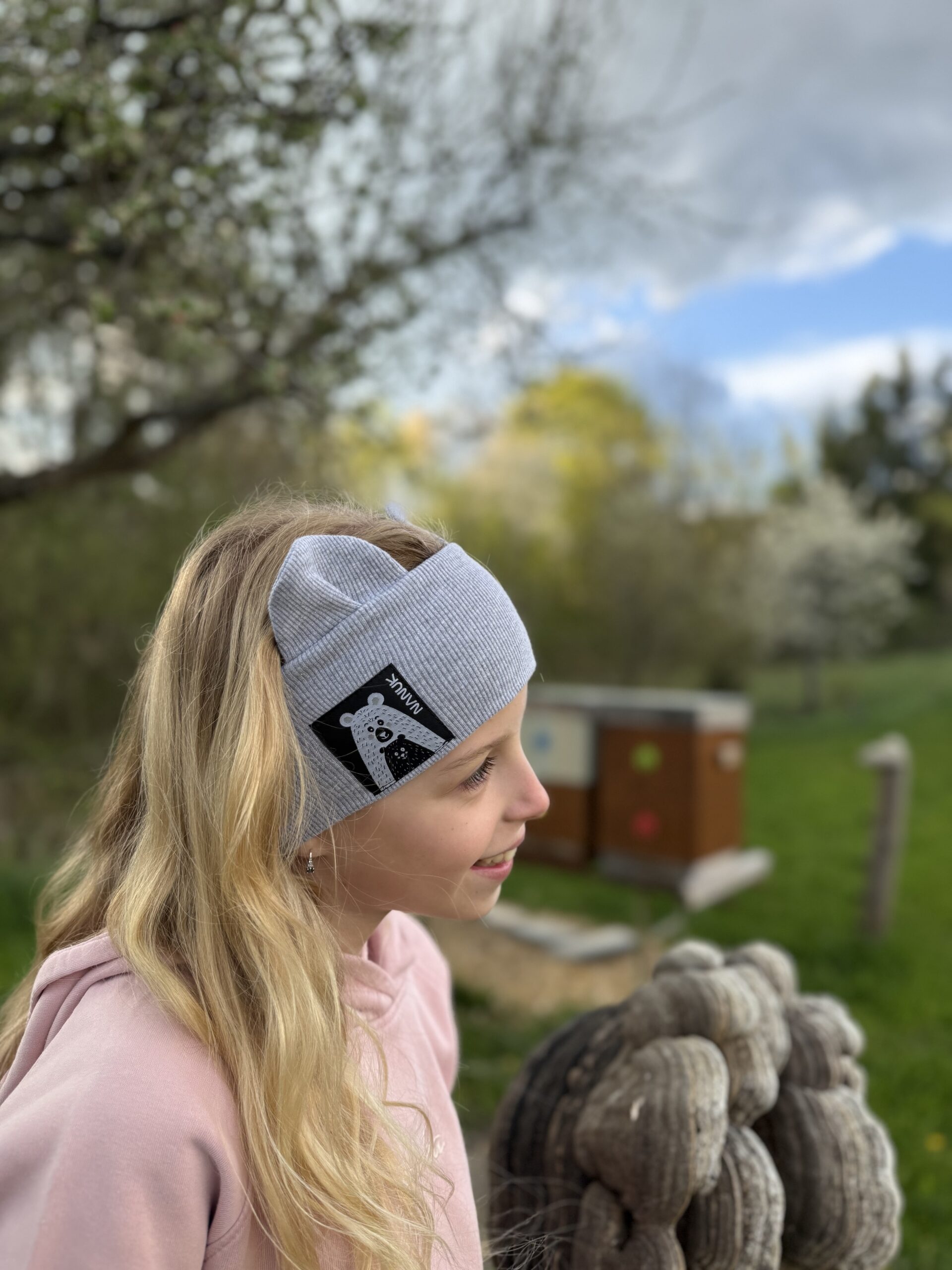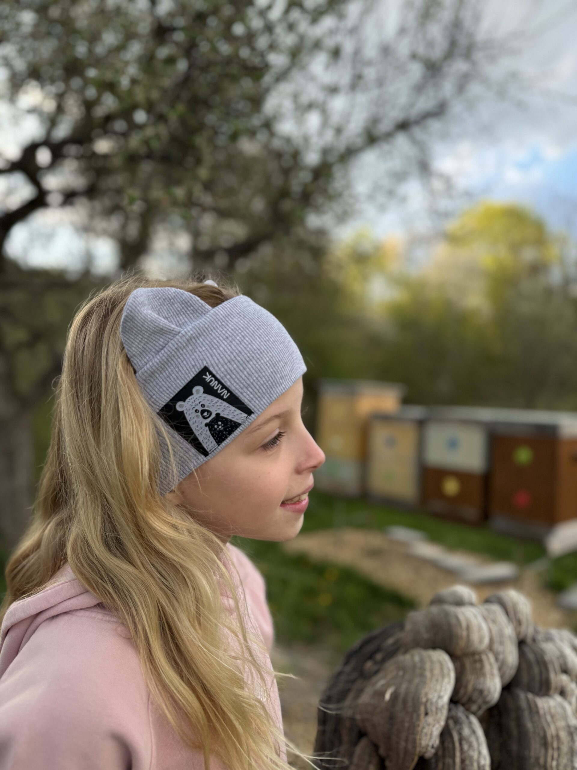 Dvojvrstvová ušatá čelenka z organickej bavlny. Príjemná a hebká na dotyk.