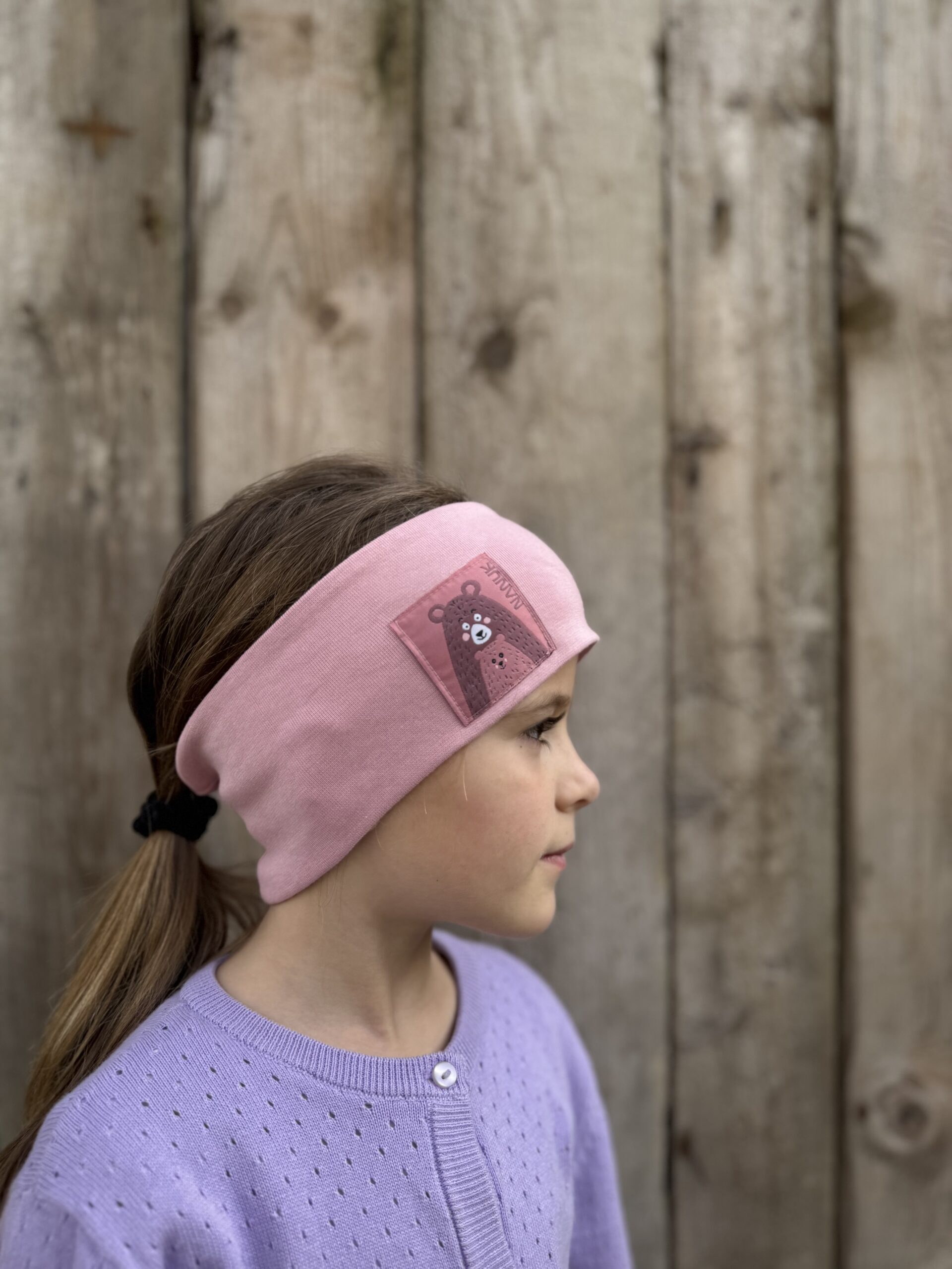 Dvojvrstvová ušatá čelenka z organickej bavlny. Príjemná a hebká na dotyk.