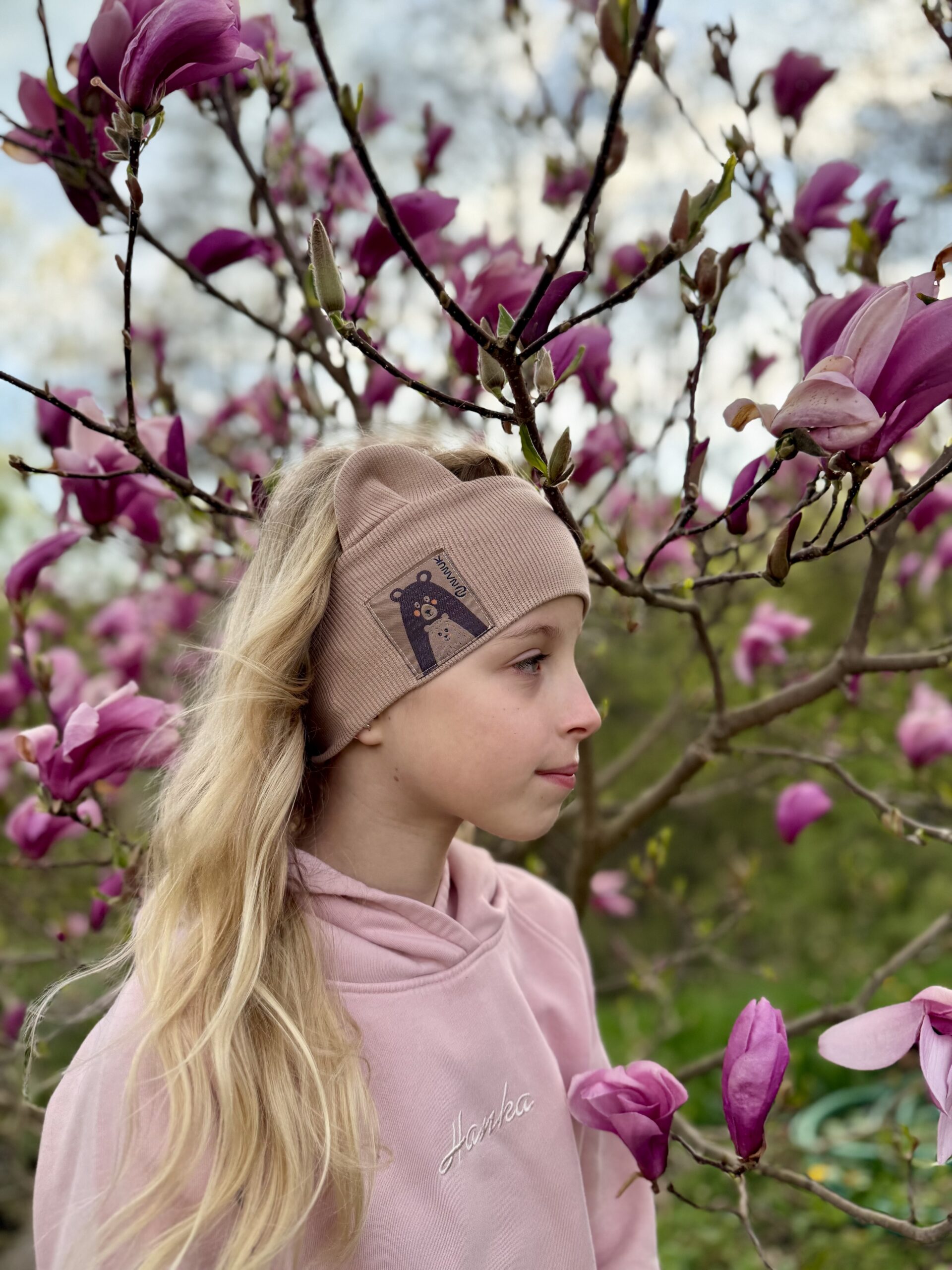 Dvojvrstvová ušatá čelenka z organickej bavlny. Príjemná a hebká na dotyk.